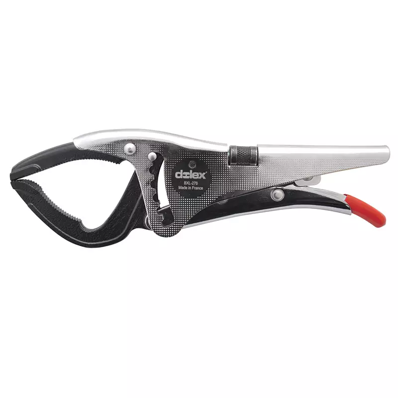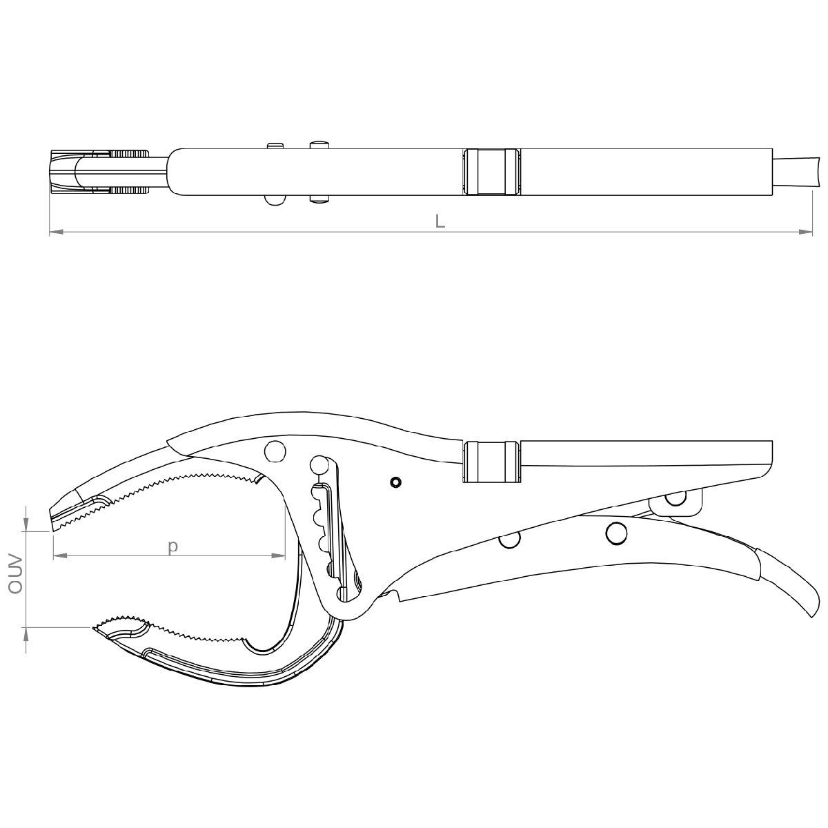 Large ouverture. Serrage avec mors toujours parallèles. Largeur des mors : 16 mm. Mors en acier forgé, striés et cémentés, avec denture 58/60 HRC. Serrage puissant et précis (de 300 à 600 daN). Corps entièrement chromé. Mors protégés par cataphorèse (revêtement technique pour une haute protection contre la corrosion). Ergonomie : serrage et déverrouillage faciles d'une seule main. Réglage précis de la force de serrage grâce à la molette.