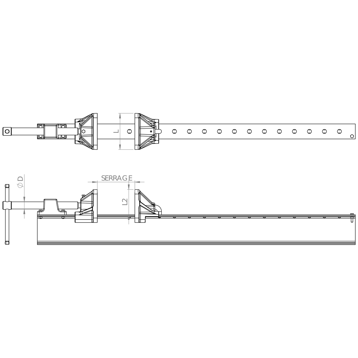 | Longueur (mm) | L (mm) | L2 (mm) | Diamètre (mm) | Serrage (mm) | Poids (kg) | ||