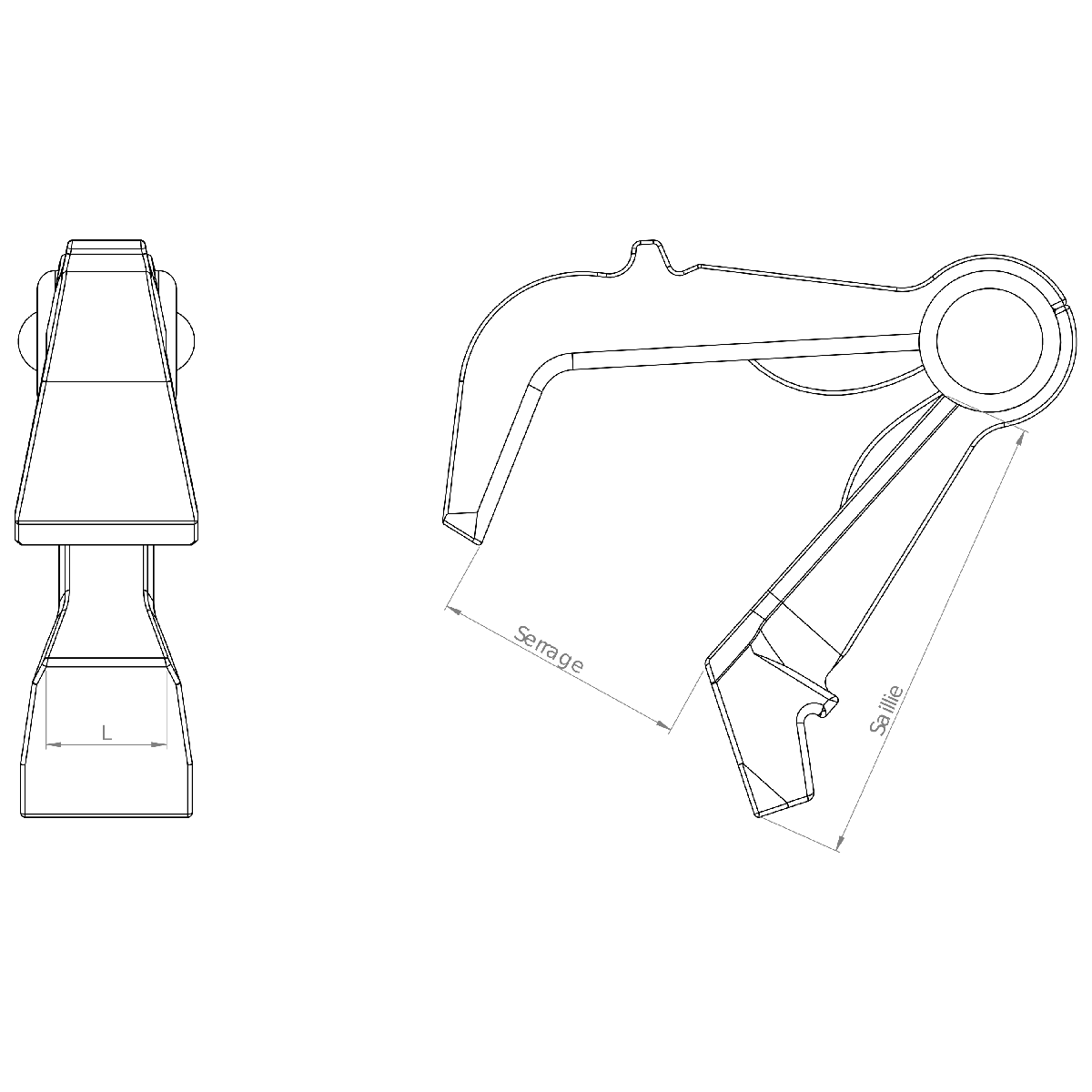| L (mm) | Saillie (mm) | Serrage (mm) | Poids (kg) | ||