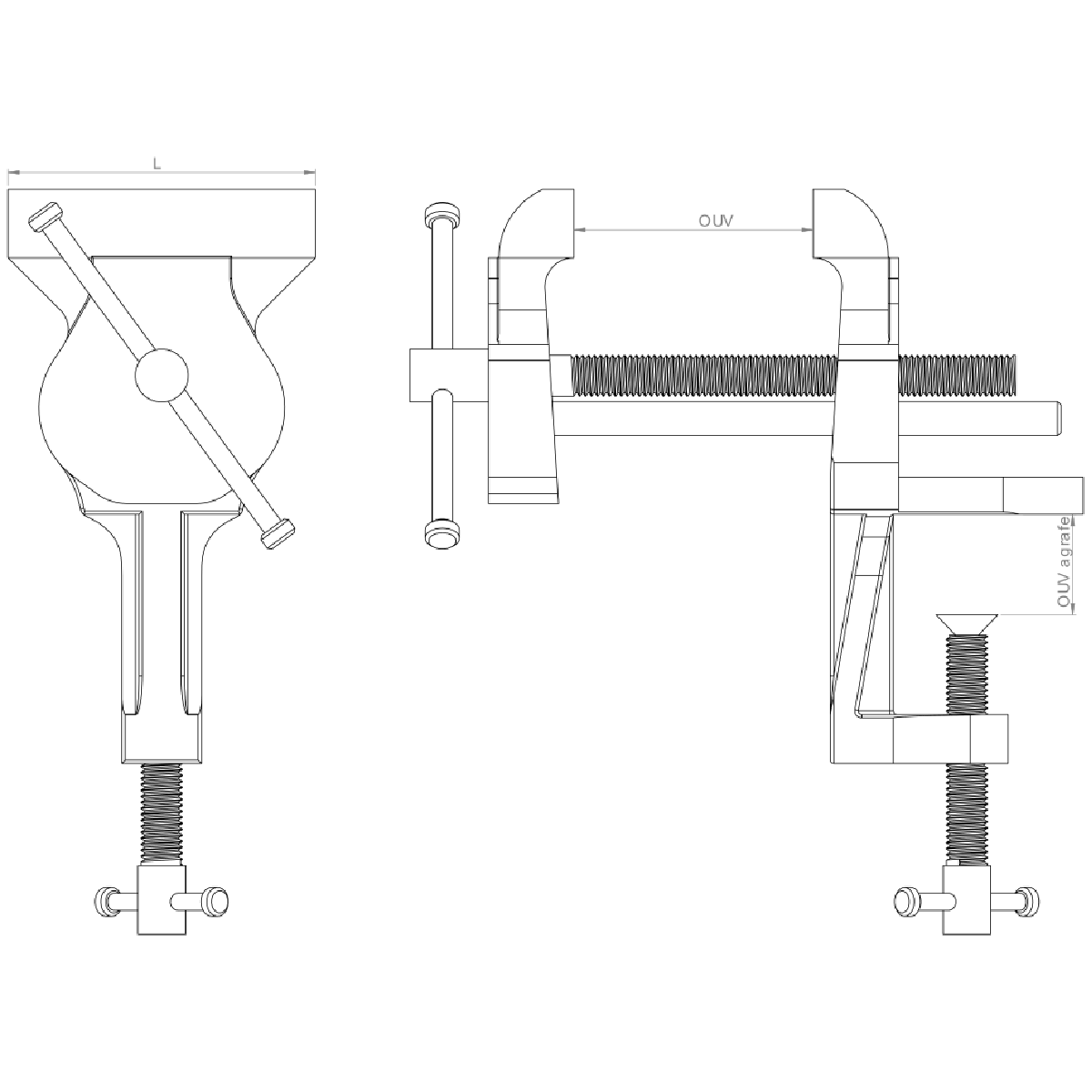 | Hauteur (mm) | H2 (mm) | Ouv (mm) | L (mm) | Ouv agrafe (mm) | Poids (kg) | ||