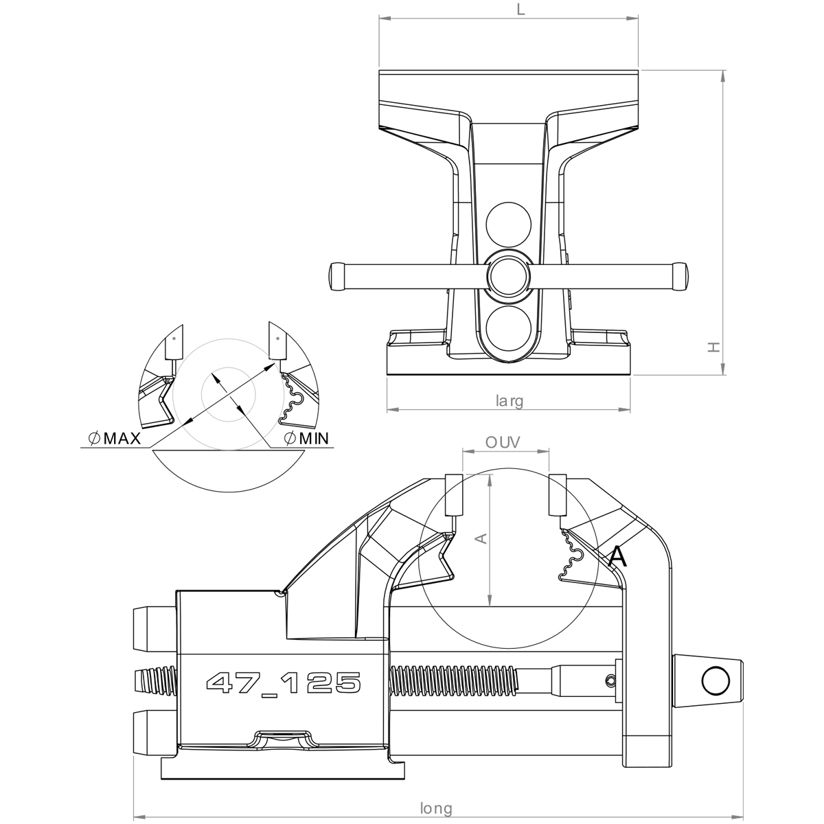 Etau double guidage avec serre tube fixe 47-150